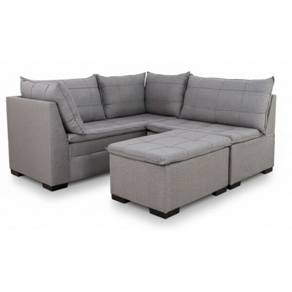 Sofá Canto 5 lugares com Puff Viena Linho Cinza A59