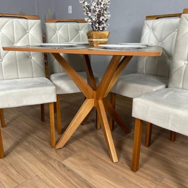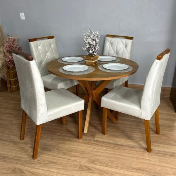 Mesa de Jantar Simpatia 1.08×1.08 Circular Com 4 cadeiras Jasmim – Cinamomo/Bege