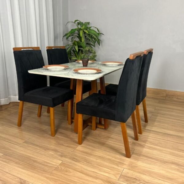 Mesa de Jantar Bali 1.20×0.80 Com 4 Cadeiras Isa – Cinamomo/Off White/Preta