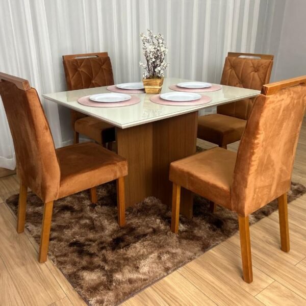 Mesa de Jantar Helo 1.20×0.90 Com 4 Cadeiras Jasmim – Mel/Off White/Terracota