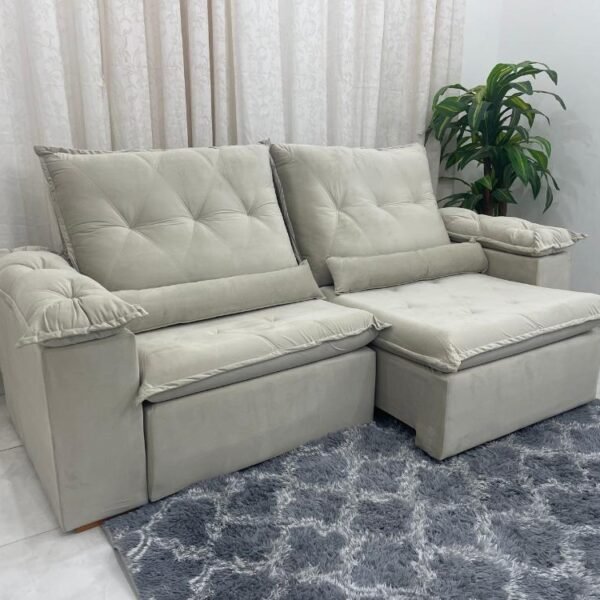 Sofá Retrátil Reclinável Las Vegas 2.30m – Bege Veludão