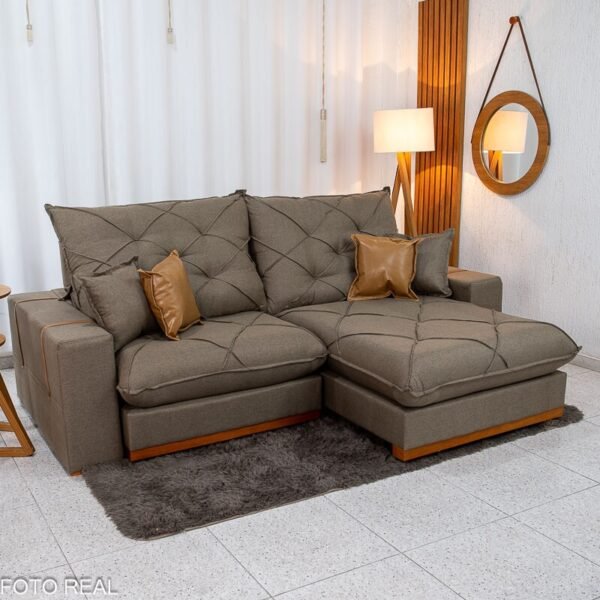 Sofá Retrátil Reclinável Malibu 2.50m Linho Marrom 1007 – D33 e Molas Ensacadas