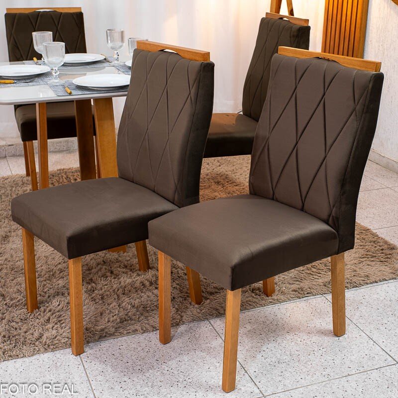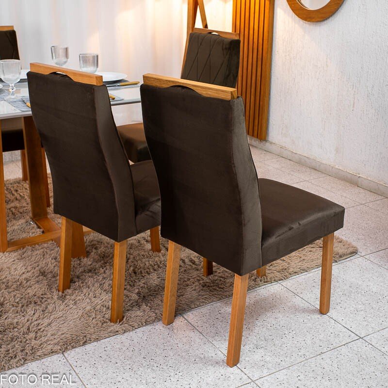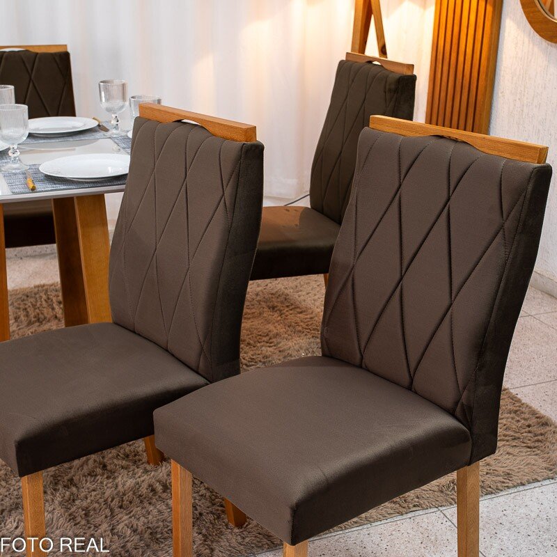 3{%%}Descrição{%%}2 Cadeiras Lisboa Veludo Marrom 509 Madeira Art Assento – Entregue Montada