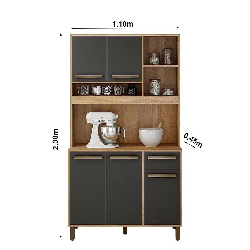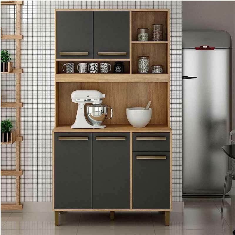 3{%%}Descrição{%%}Armário Ametista 05 Portas 01 Gaveta Cinamomo/Grafite Larg.1.10m Valdemoveis