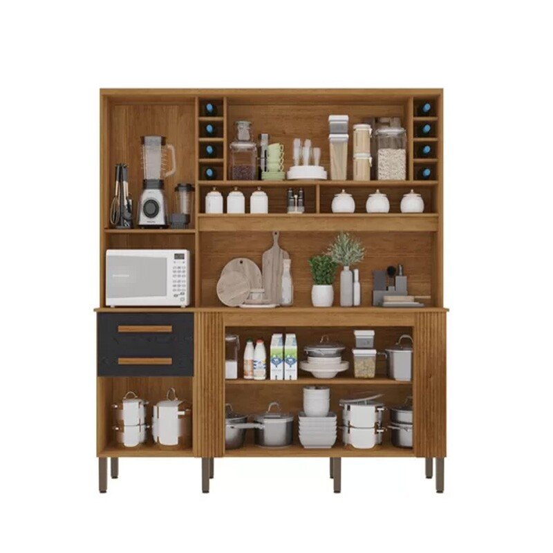 3{%%}Descrição{%%}Armário Cozinha Catar Larg. 2.00m Cinamomo/Preto 6 Portas 2 Gavetas – Sallêto