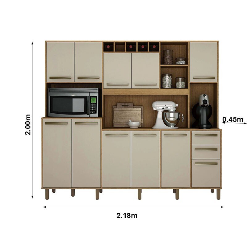 3{%%}Descrição{%%}Armário Cozinha Completa Petra Cinamomo/Off White Valdemoveis