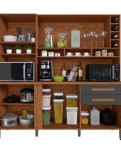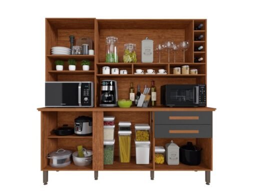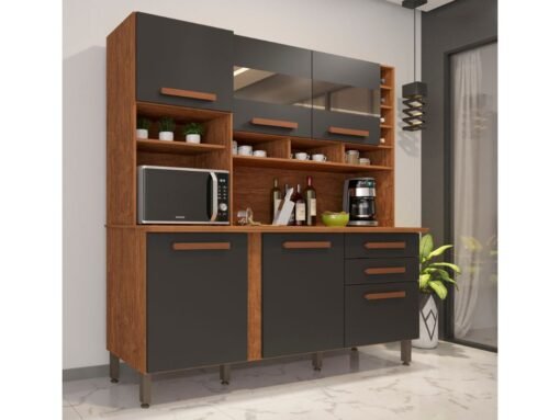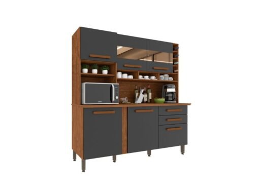 Armário Kit de Cozinha Alexia 6 Portas 2 Gavetas – Cinamomo/Grafite