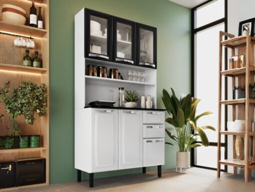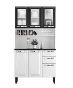 Armário Kit de Cozinha c/ Vidro 1,05m Pratika – Branco/Preto