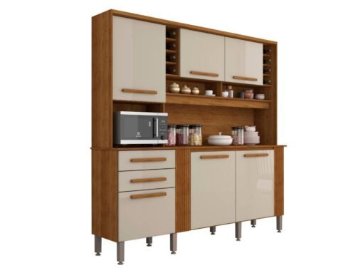 Armário Kit de Cozinha Catar 6 Portas 2 Gavetas – Cinamomo/Off White