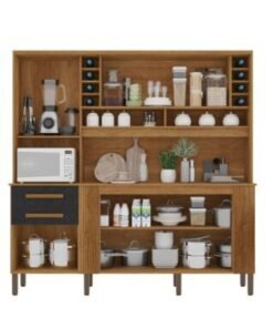 Armário Kit de Cozinha Catar 6 Portas 2 Gavetas – Cinamomo/Preto