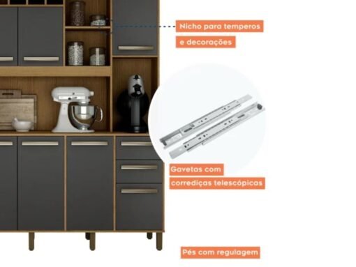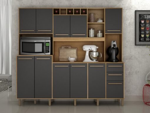 Armário Kit de Cozinha Petra 11 portas – Cinamomo/Grafite