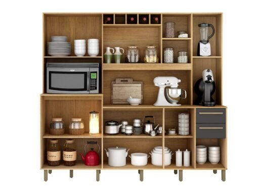 O Armário Kit de cozinha Petra é super vesátil e completo. Composto por 11 portas e 2 gavetas, com puxadores em EPS cromado, pés reguláveis e corrediças telescópicas, ele é a opção ideal pra você que quer renovar a sua cozinha.