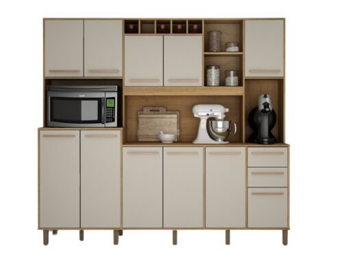 Armário Kit de Cozinha Petra 11 portas – Cinamomo/Off White