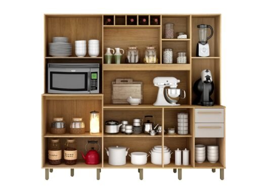O Armário Kit de cozinha Petra é super vesátil e completo. Composto por 11 portas e 2 gavetas, com puxadores em EPS cromado, pés reguláveis e corrediças telescópicas, ele é a opção ideal pra você que quer renovar a sua cozinha.