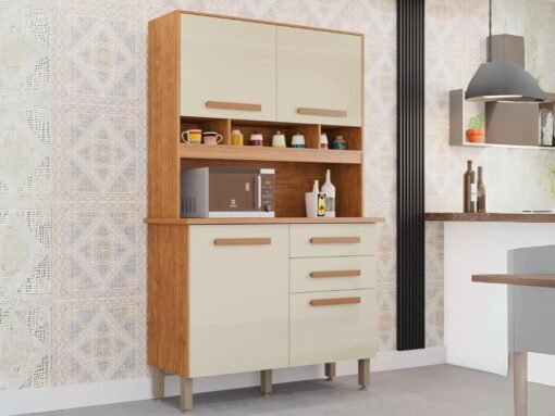 Armário Kit de Cozinha Sofia 4 Portas 2 Gavetas – Cinamomo/Off White