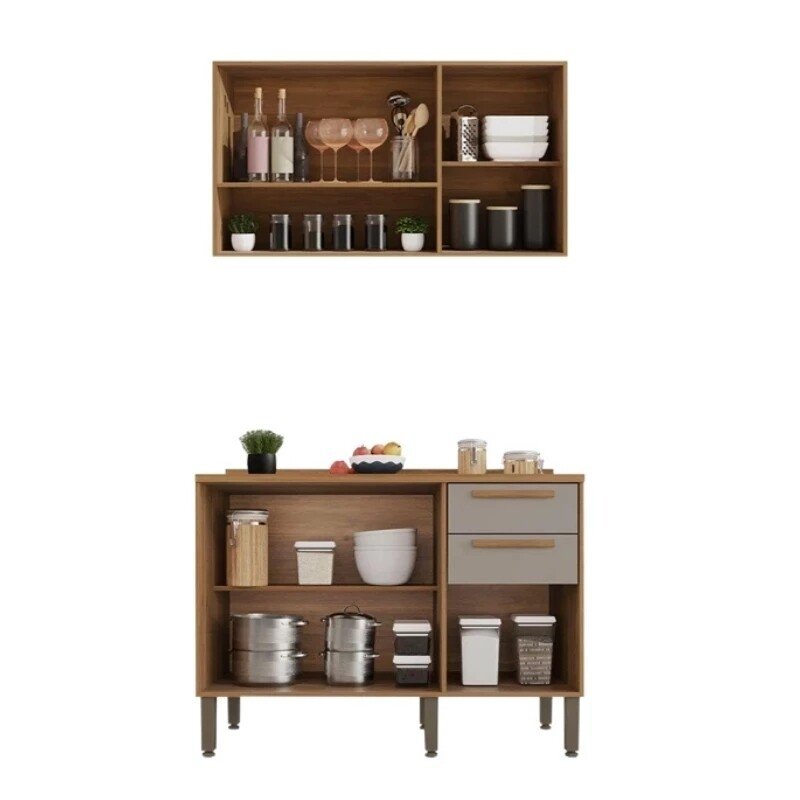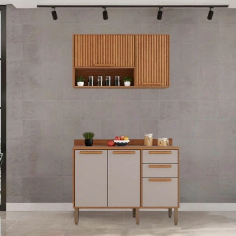 3{%%}Descrição{%%}Balcão Flórida 3 Portas 2 Gavetas Larg. 1.20m + Armário Aéreo Florida 2 Portas Larg. 1.20m Ripado Cinamomo/Off – Sallêto