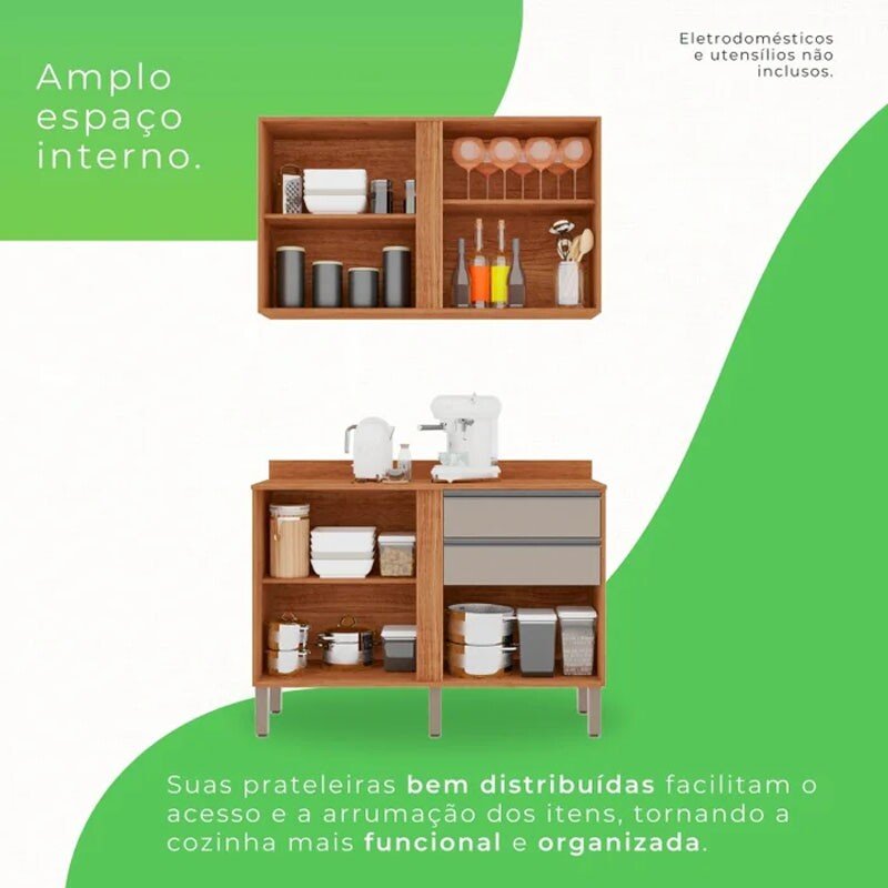 3{%%}Descrição{%%}Balcão Pérola Cinamomo/Off 1.20m + Aéreo Pérola 2 Portas Cinamomo/Off 1.20m – Sallêto
