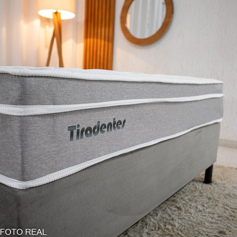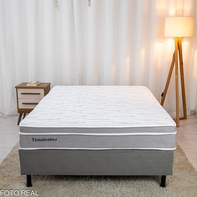 3{%%}Descrição{%%}Box Casal Sued Cinza Nosso Sonho + Colchão Casal Tiradentes Linho Cinza 138x188x61 Molas Ensacadas – D’ Vitrine