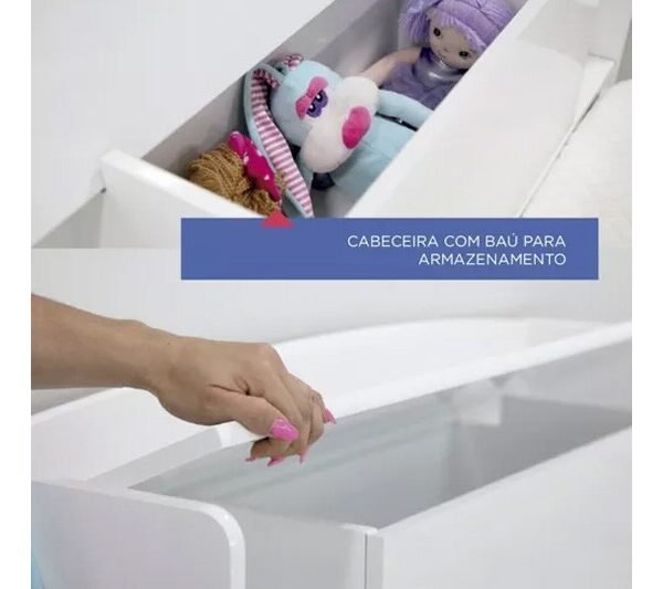 3{%%}Descrição{%%}Cama Solteiro Milênio Branca Cabeceira C/ Baú – D Doro