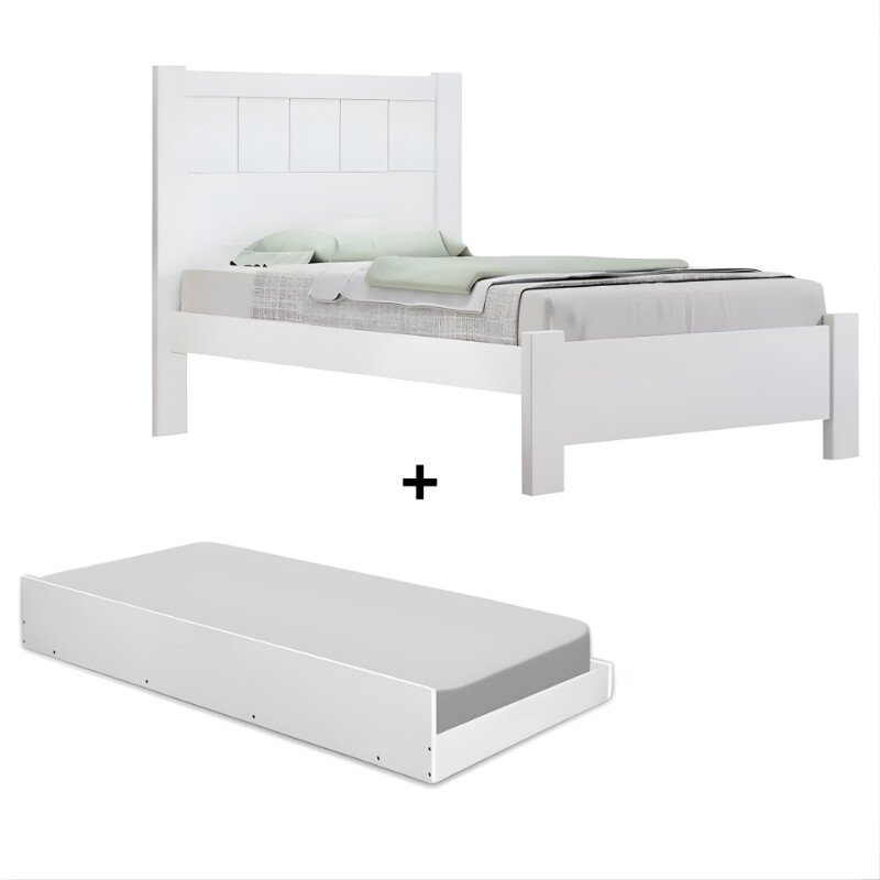 3{%%}Descrição{%%}Cama Solteiro Primícia Branco 100% MDF D Doro + Cama Auxiliar Barcelona Branco Tebarrot