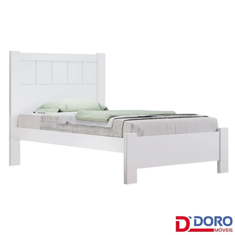 3{%%}Descrição{%%}Cama Solteiro Primícia Branco 100% MDF Larg. 1.03m – D Doro