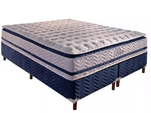 O Colchão Blue Molas ensacadas queen possui Pillow Top que é o mesmo que ter um travesseiro gigante em cima do colchão. O Pillow Top é sinônimo de maciez e de conforto extra, por ser uma manta sobreposta presa ao colchão, confeccionado em tecido com espuma soft, que proporciona ao colchão ser mais aconchegante e ter um conforto macio. A beleza das linhas clássicas, aliada à tradição e tecnologia. É destinado a quem procura conforto sem abrir mão da durabilidade. As Molas Pocket, conhecidas como molas ensacadas, são produzidas em formato barril pré comprimidas e confeccionadas em com fio de aço com alto teor de carbono. Garantem excelente flexibilidade com alta durabilidade.