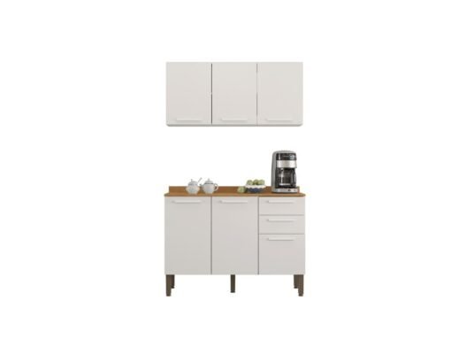 Combo Armário de Cozinha Aéreo 3 portas + Balcão 1.20 New Valência – Branco