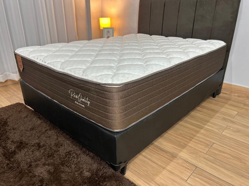 Combo Base Courino + Colchão Pro Quality Molas Ensacadas Casal – 138x188x32