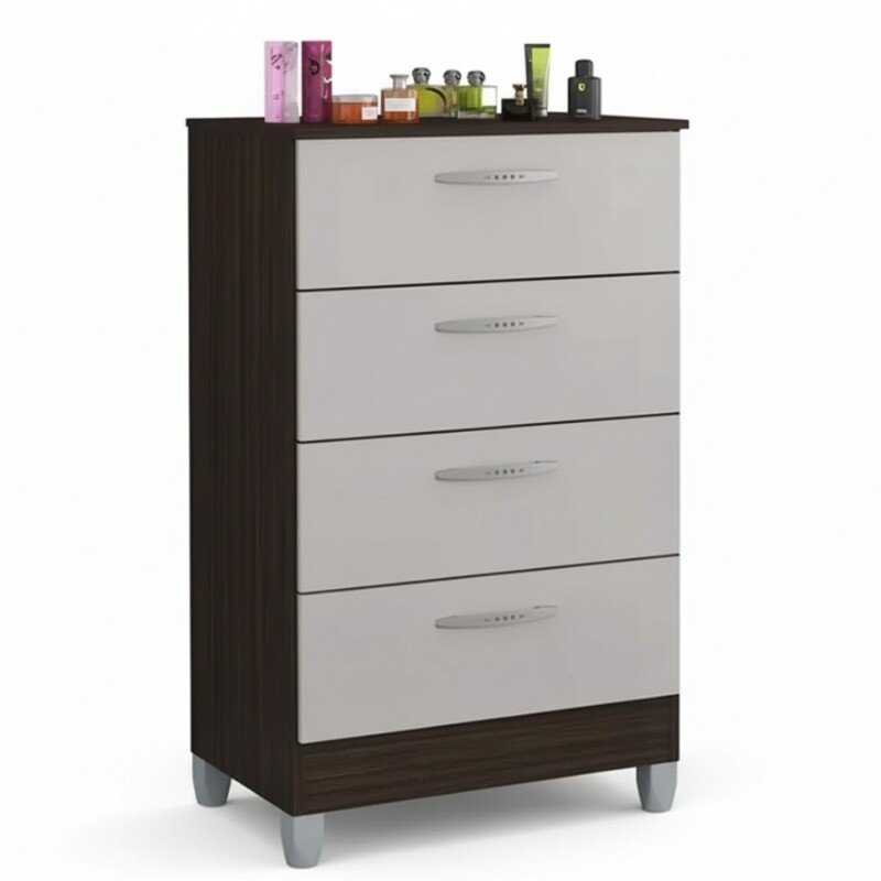 3{%%}Descrição{%%}Cômoda com 4 Gavetas Chocolate/Off Larg. 0.59m – Poquema