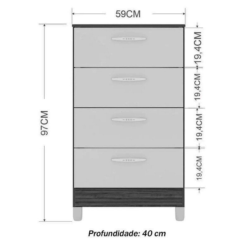 – Possui 4 gavetas com corrediças metálica