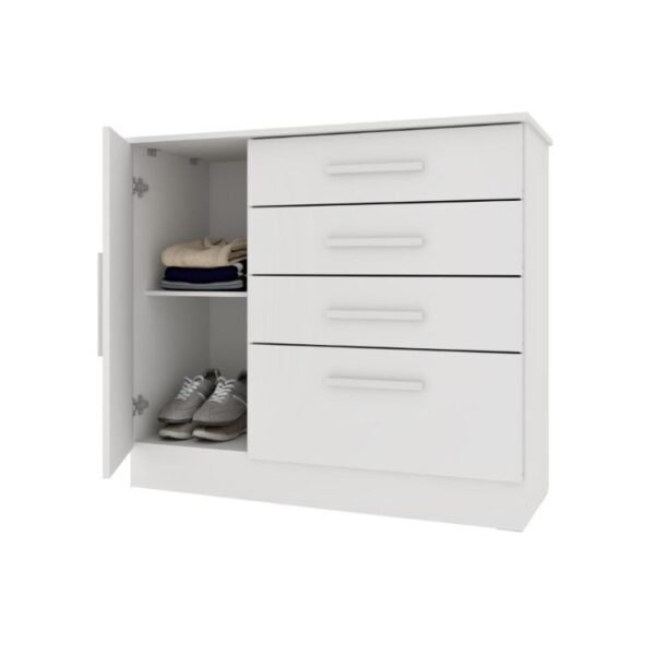 Cômoda Sapateira Chicago 4 Gavetas 1 Porta Tcil – Branco