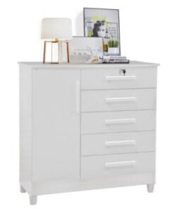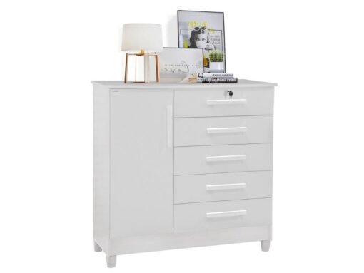 Cômoda Vitória 5 gavetas 1 porta – Branco