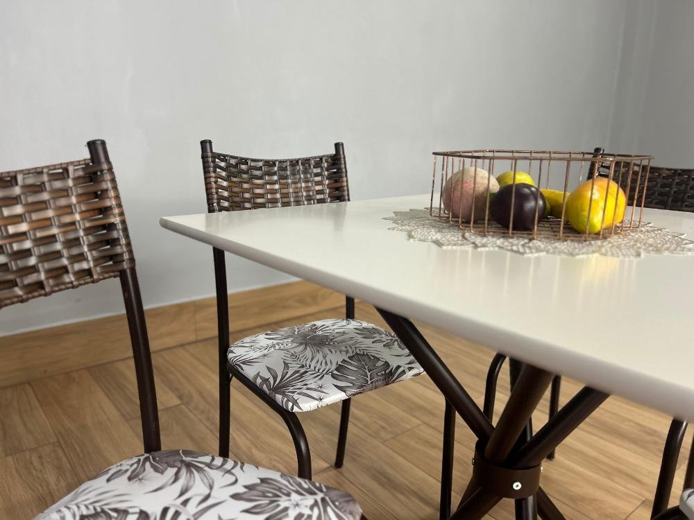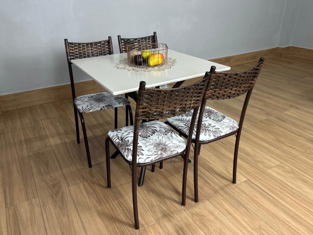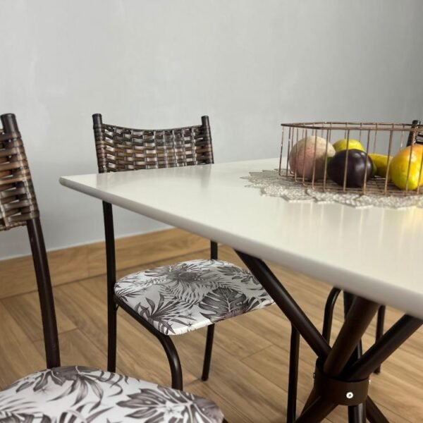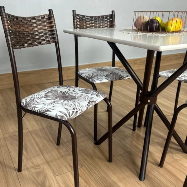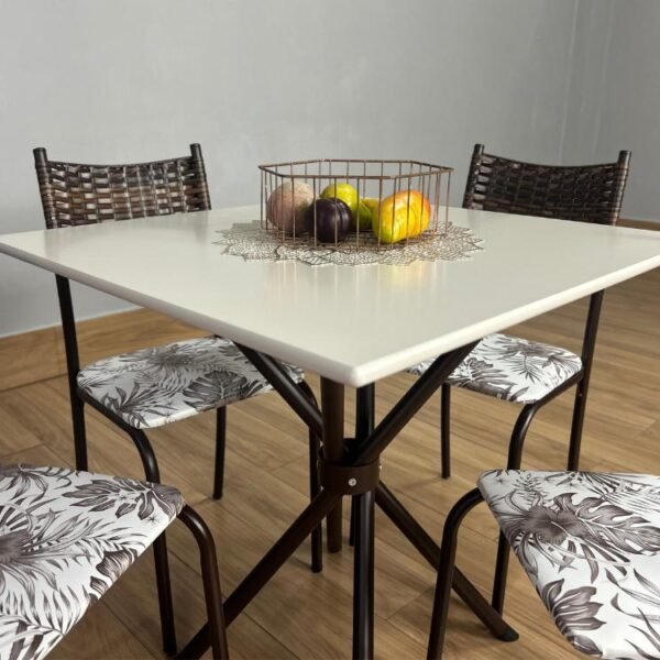 Conjunto Mesa Tubular Macaé Tampo Quadrado Com 4 Cadeiras Ratam – Marrom/Off White