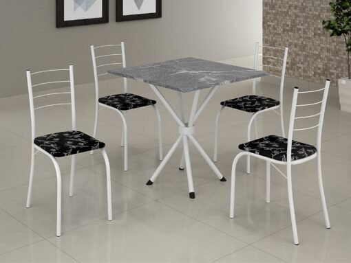 Conjunto Mesa Tubular Rio Branca com 4 cadeiras Tampo Granito Topázio – 0.70×0.70