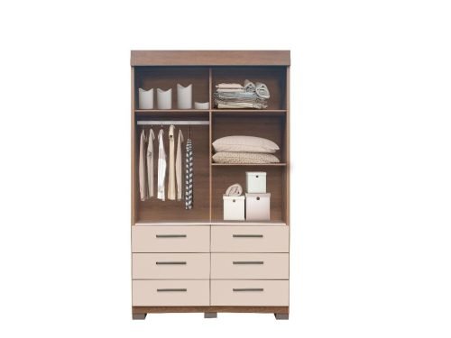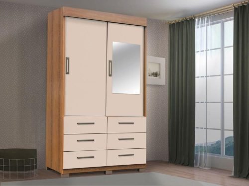 Guarda-Roupa Buzios 2 portas de correr com espelho 6 gavetas -Mel/Areia