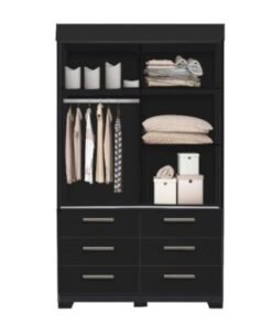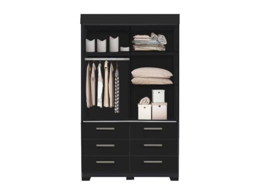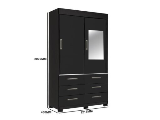 Guarda-Roupa Buzios 2 portas de correr com espelho 6 gavetas – Preto