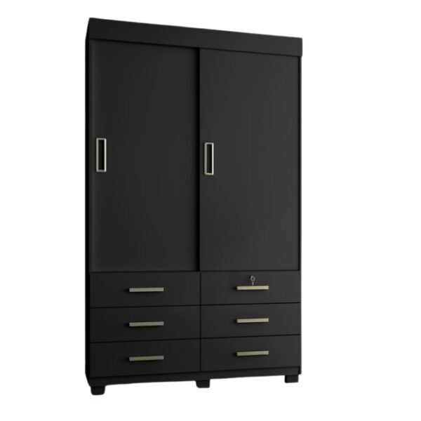 Guarda-Roupa Buzios 2 portas de correr Sem espelho 6 gavetas – Preto
