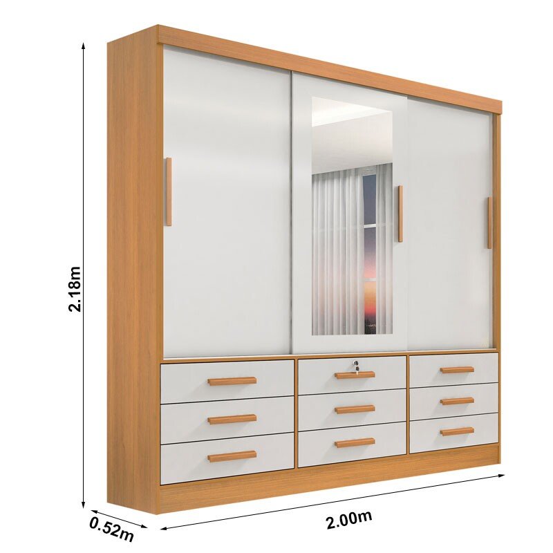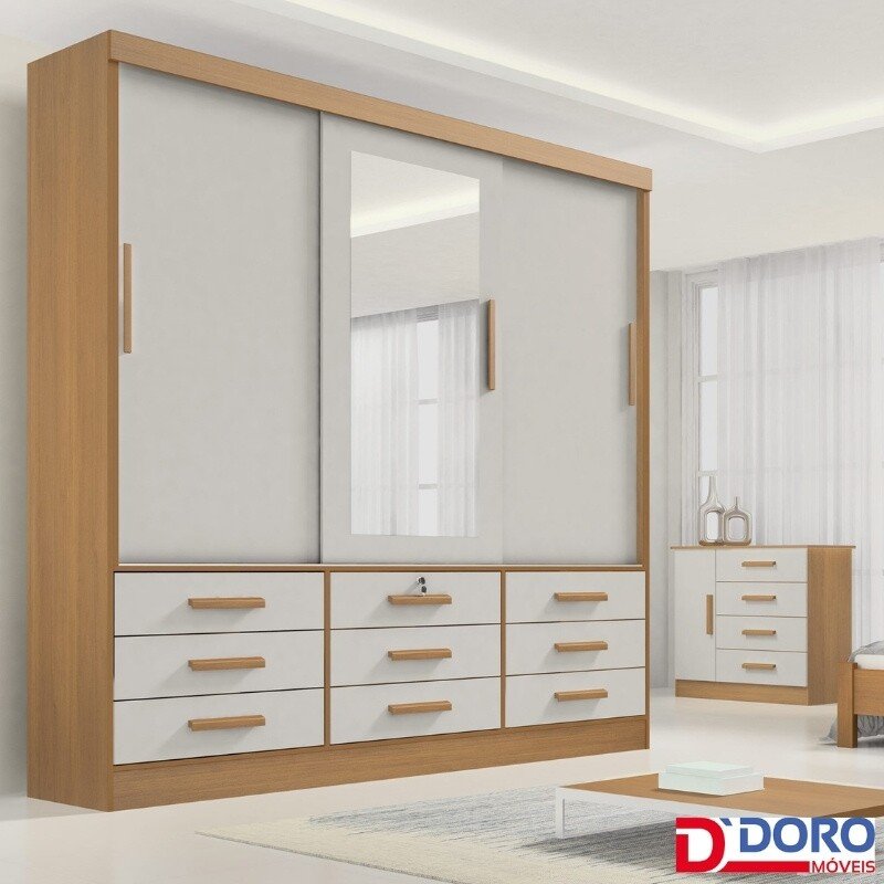 3{%%}Descrição#Como Montar{%%}Roupeiro Casal Meridian Plus Cinamomo/Off 3 Portas 9 Gavetas C/ 1 Espelho Larg. 2.00m – D Doro