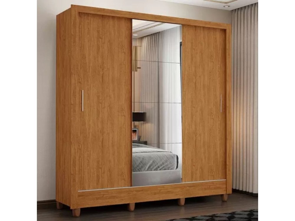 Guarda-Roupa Dubai Plus c/ espelho 3 portas e 3 gavetas – Cinamomo/Off White