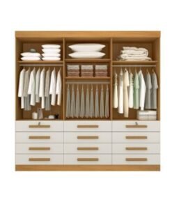 Guarda-Roupa Mônaco 6 portas e 12 gavetas – Cinamomo/Off White Medidas Altura: 2.30m Largura: 2.40m Profundidade: 0.55cm Características Portas, moldura e frente das gavetas em MDF Corrediça telescópica 40cm Profundidade da gaveta 40cm Abertura total da gaveta Suporte de cabide metálico Duas gavetas com chave Produzido em chapa de 15mm Três opções de montagem interna * As imagens dos produtos são meramente ilustrativas. As cores podem mudar dependendo do brilho, tipo de câmera, ou até mesmo como as imagens são exibidas em computadores ou notebooks com telas de LCD ou LED, tablets ou smartphones, dependendo da quantidade de pixels, deixando as imagens com cores mais escuras ou mais claras.