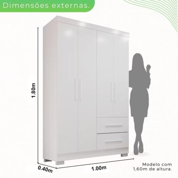 3{%%}Descrição{%%}Guarda-Roupa Solteiro 4 portas Estrela Larg. 1.00m Branco Com Pés Sallêto