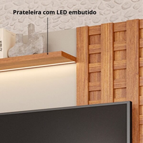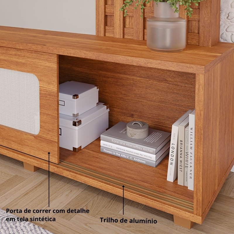 * As imagens dos produtos são meramente ilustrativas. As cores podem sofrer variações dependendo da luminosidade, tipo de câmera, ou mesmo a visualização das imagens em computadores ou notebooks com telas LCD ou LED, tablets ou smartphones dependendo da quantidade de pixls, podendo deixar as imagens com cores mais opacas ou cores mais vibrantes. Os objetos decorativos presentes na imagem não acompanham o produto. Além disso, as TVs podem apresentar variações em suas carcaças de acordo com a marca, portanto meça a TV e veja se a medida do espaço deixado no produto é compatível.