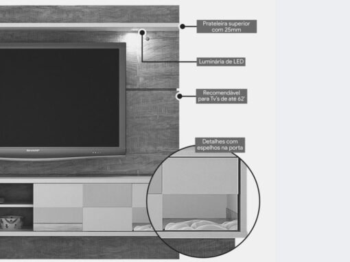 Nicho para aparelho eletrônico com porta de correr Para tv até 62″