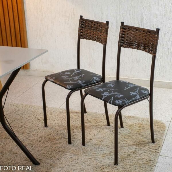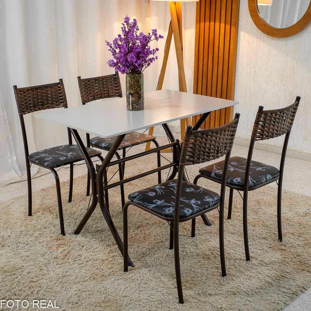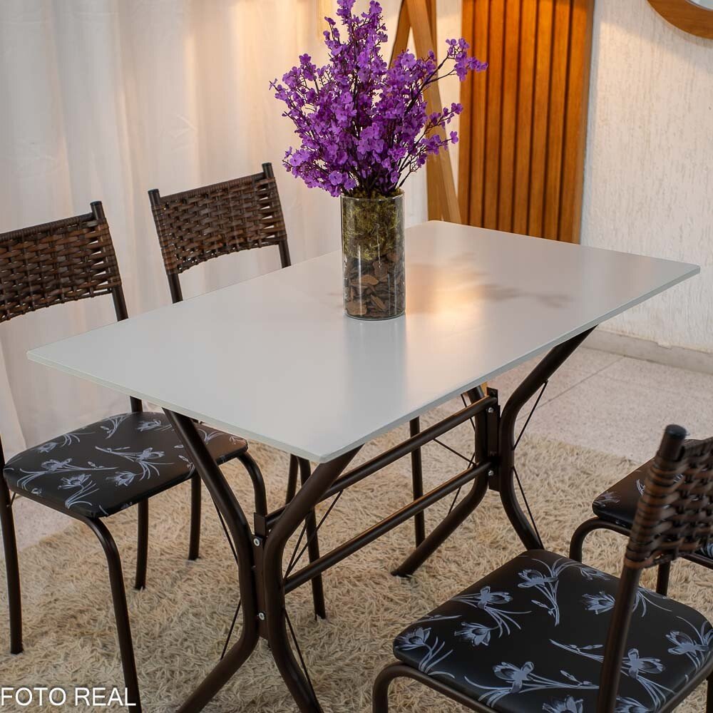 3{%%}Descrição{%%}Mesa Atlanta Base Cabo Frio Marrom Tampo Pedra Off 100×60 4 Cadeiras Assento Preto – Teixeira