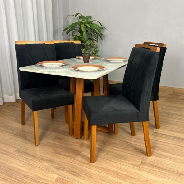 Mesa de Jantar Bali 1.20×0.80 Com 4 Cadeiras Isa – Cinamomo/Off White/Preta