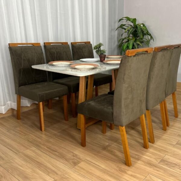Mesa de Jantar Bali 1.60×0.80 Com 6 Cadeiras Isa – Minas Plac/ Ouro decor