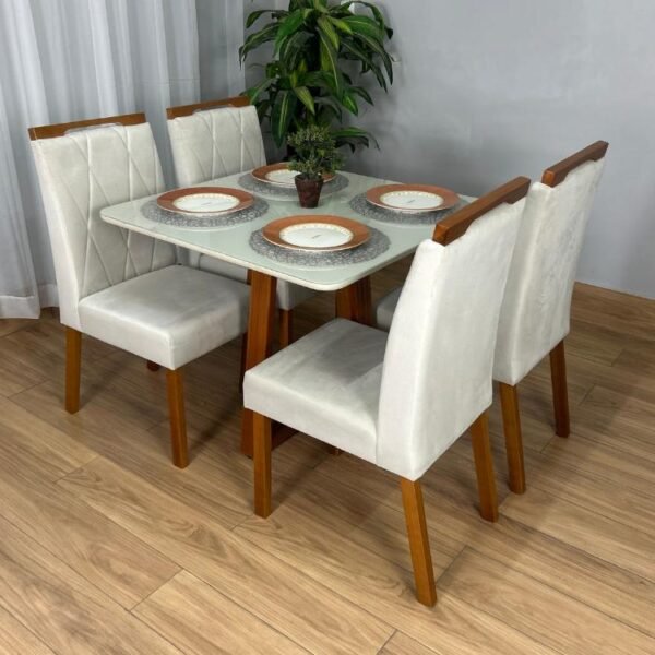 Mesa de Jantar Bali 0.90×0.90 Com 4 Cadeiras Isa – Minas Plac/Ouro Decor