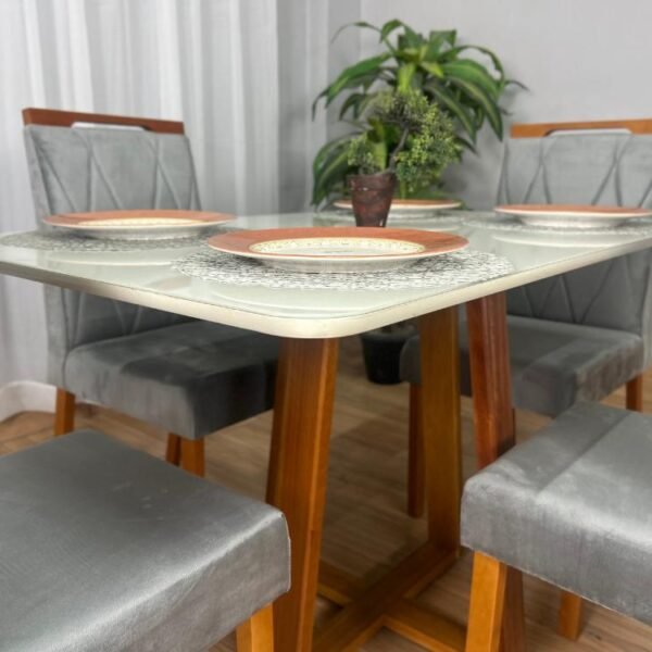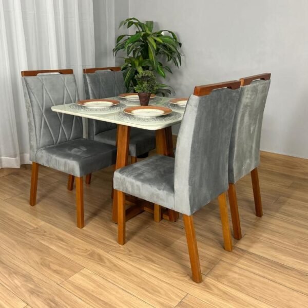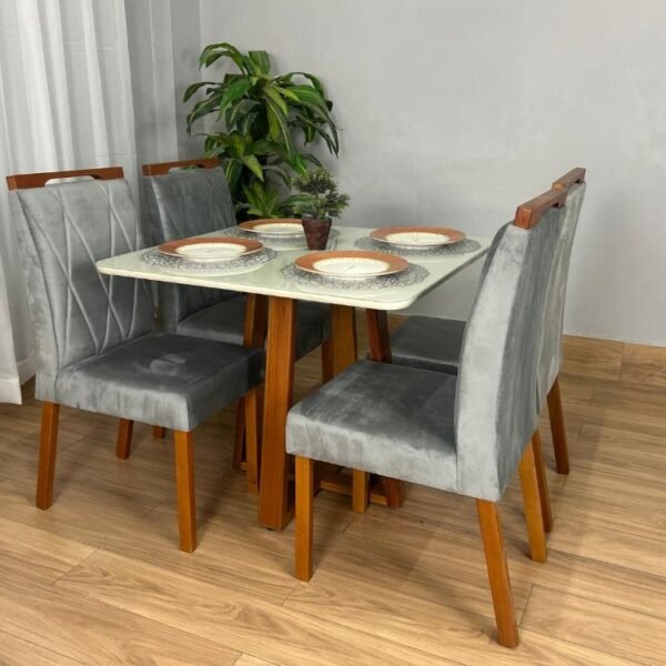 Mesa de Jantar Bali 90×90 Com 4 Cadeiras Isa – Cinamomo/Off White/Cinza Veludo