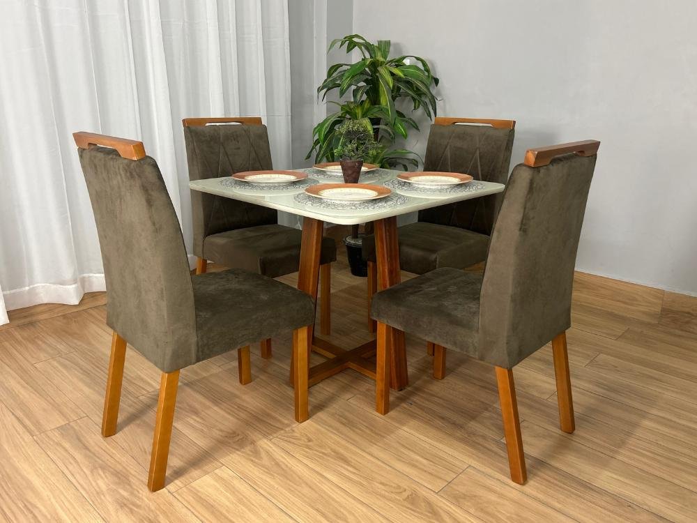 Mesa de Jantar Bali 0.90×0.90 Com 4 Cadeiras Isa – Minas Plac/Ouro Decor