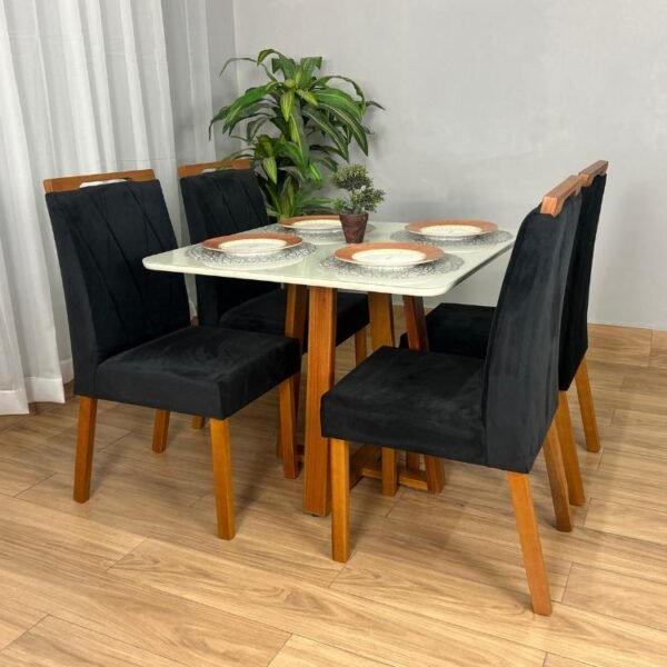 Mesa de Jantar Bali 0.90×0.90 Com 4 Cadeiras Isa – Minas Plac/Ouro Decor